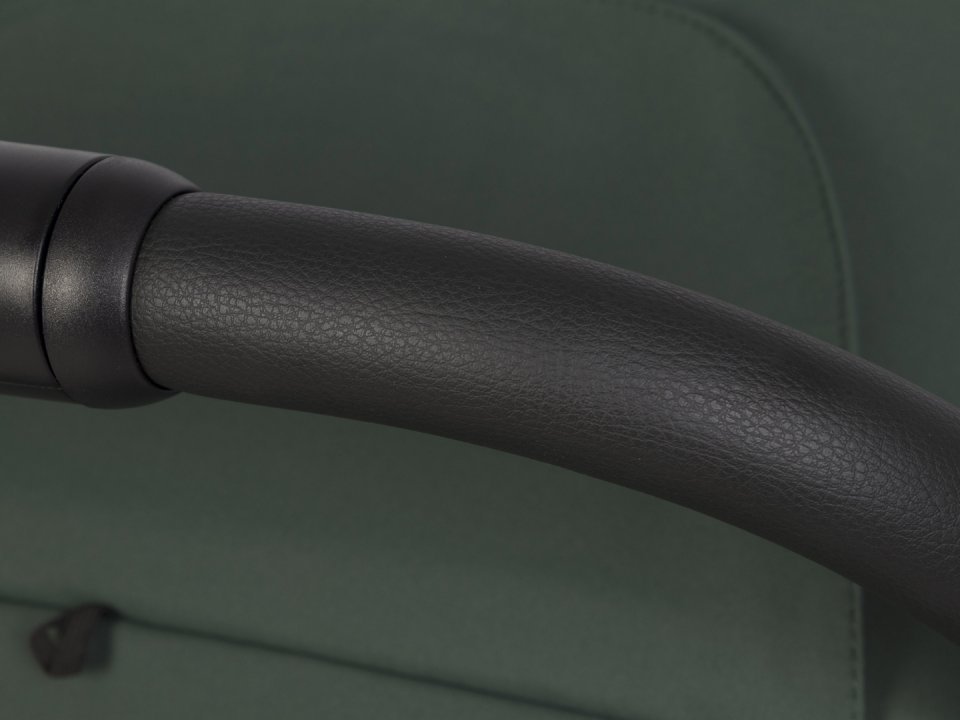* Manerul caruciorului este pozitionat la inaltimea de 103 cm de la sol, ceea ce inseamna ca poate fi in mod ergomonic utilizat de catre persoane cu inaltimea cuprinsa intre 155 si 190 cm. Utilizatorii cu aceasta inaltime pot manevra caruciorul foarte usor, fara a exista riscul de a lovi cu picioarele suspensia din spate, datorita si sitemului ingenios de franare, care este in asa fel conceput incat nu exista ax intre rotile din spate.