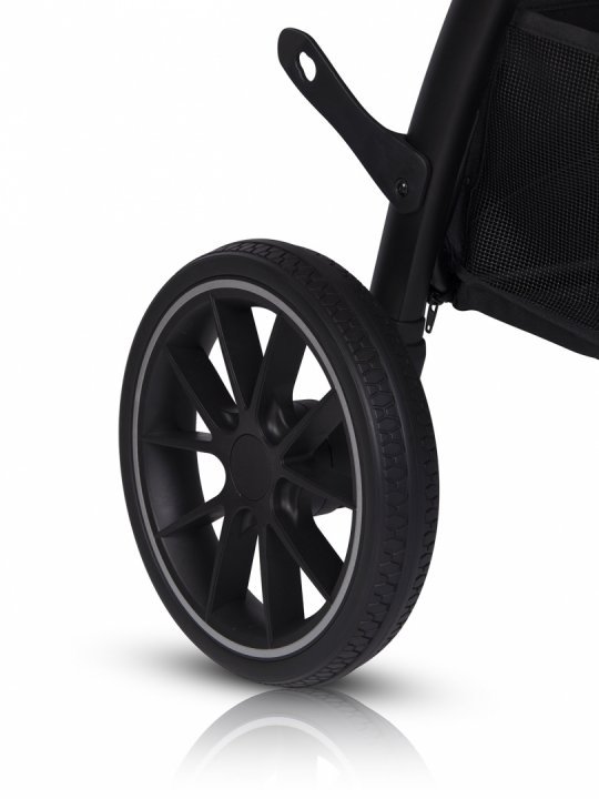 - ROTI MARI DE CAUCIUC CU STRIATII - datorita rotilor de cauciuc plin si material pentru toate cele patru anotimpuri, CORSO va rula perfect pe orice suprafata, de la gresia lucitoare din mall-uri, la pamantul si zapada de pe aleile parcurilor.