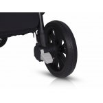 * Suspensia pe toate cele patru roti este conceputa in asa fel incat sa absoarba in mod optim socurile resimtite de piesa in care sta copilul, nu de cadrul propriu-zis, asa cum intalnim la multe alte modele de carucioare. Acest lucru se poate testa foarte usor prin apasarea piesei in sine si nu pe manerul caruciorului.