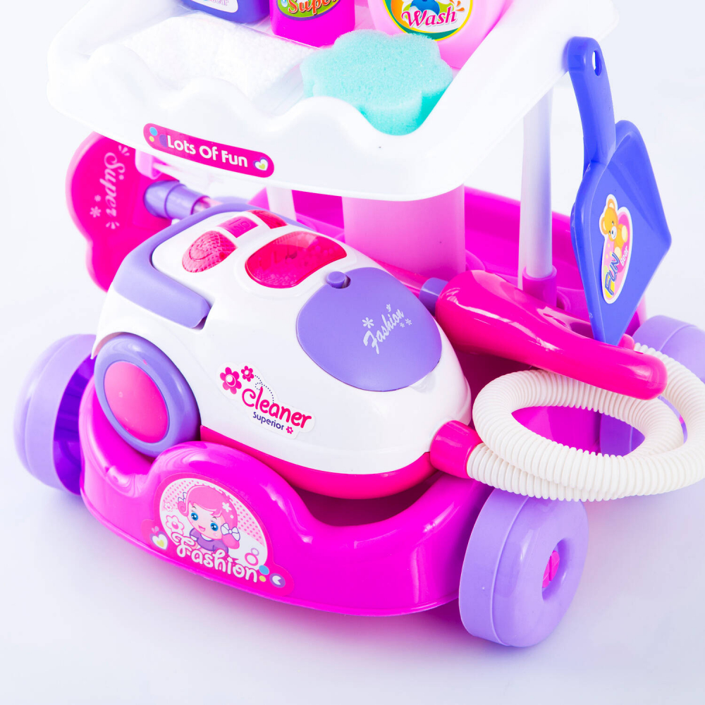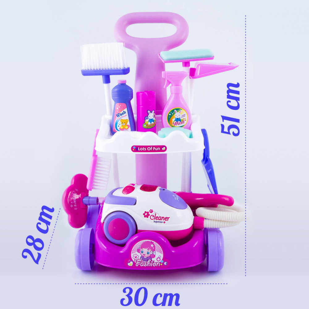 Carucior de curatenie pentru copii, cu Aspirator de jucarie functional cu sunete, si accesorii specifice incluse 28 x30 x51 cm