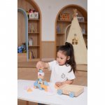 • Dotat cu blocuri colorate care stimuleaza imaginatia si creativitatea copiilor.