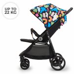 * Dispune de amortizoare pe toate rotile, ceea ce face ca trotuarele denivelate sau pavarea sa nu fie o problema pentru acest carucior!