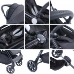 | Caracteristici speciale: | Suspensii Pliere automata Suport picioare reglabil Compatibil avion Spatar reglabil Bara protectie detasabila |