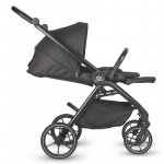 Carucior modular 2 in 1 Coccolle Serry Jet Black + Scoica auto iSize Coccolle Knox Greystone, Suport de picioare reglabil, Suspensie, Huse pentru picioare, Geanta, Adaptoare, Bara de protectie si maner din piele ecologica
