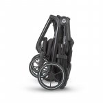 Structura căruciorului este realizată din material rezistent și fiabil, vopsit în negru mat, oferind atât durabilitate, cât și un aspect modern și elegant. Tapiseriile sunt confecționate din material textil gros-rezistent, iar interiorul copertinelor este căptușit cu țesătură delicată într-o nuanță asortată – o alegere care asigură confort termic și estetic.