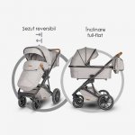 Carucior modular 2in1 Coccolle Nessia certificat EN1881-2-2018 pana la 22 kg, Roti mari de cauciuc cu suspensie, Piesa reversibila, Landou cu saltea anti-reflux, Copertina XXL cu protectie UV 50+, Maner telescopic, Pliere compacta, Lunar Rock