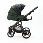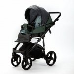 Carucior pentru copii 2 in 1, Adamex Lanti SD41, pliabil, landou cu salteluta, copertina reglabila, roti frontale pivotante 360, cu dubla suspensie si husa de ploaie inclusa, Full EcoLeather, Green / Black