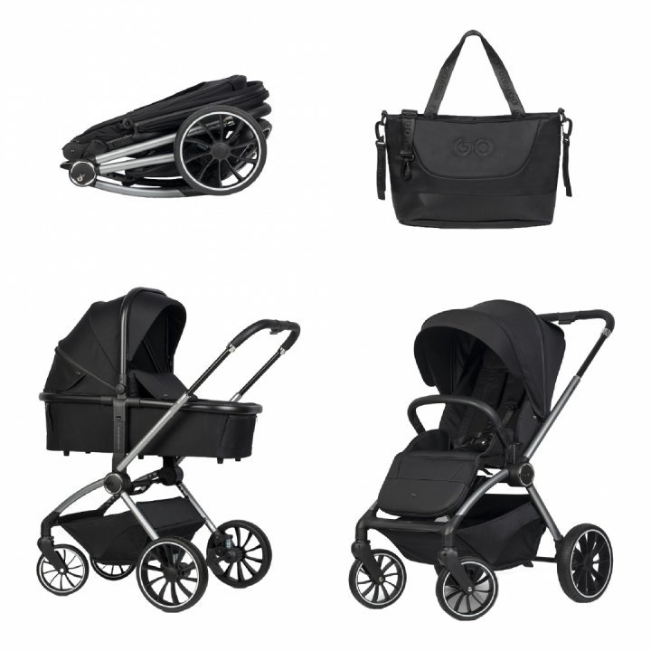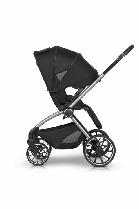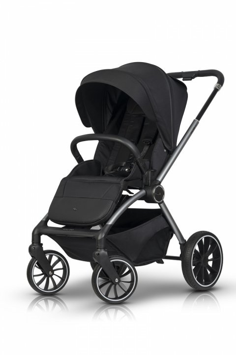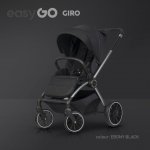 Carucior pentru copii 2 in 1 Easy Go Giro, pana la 22 kg, cu landou 80 cm, Maner telescopic, copertina XXL, pliere tip pendul, cadru ultra-usor din aluminiu, accesorii incluse, Ebony Black