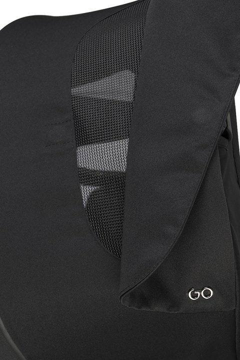 Tapiteria caruciorului EASYGO GIRO este realizata dintr-un material tricotat la moda. In scaun a fost utilizata o sectiune speciala de material ventilat care absoarbe umezeala.