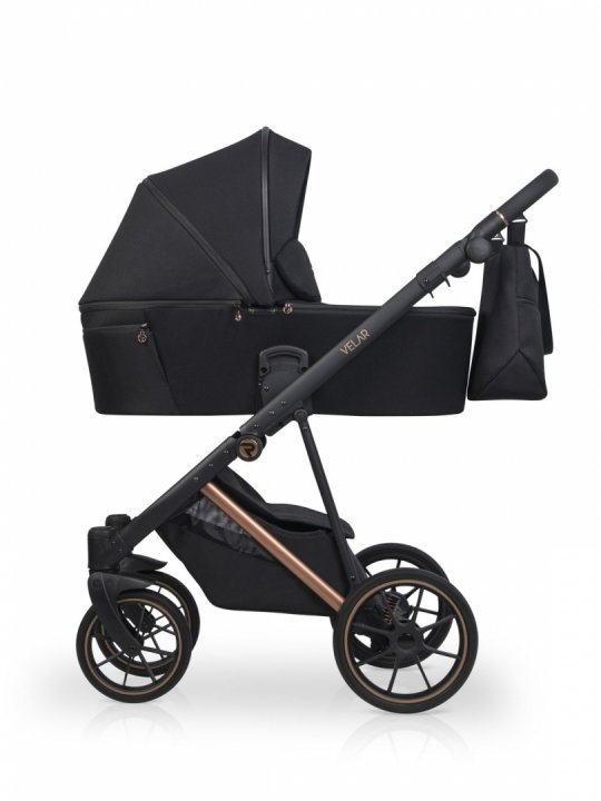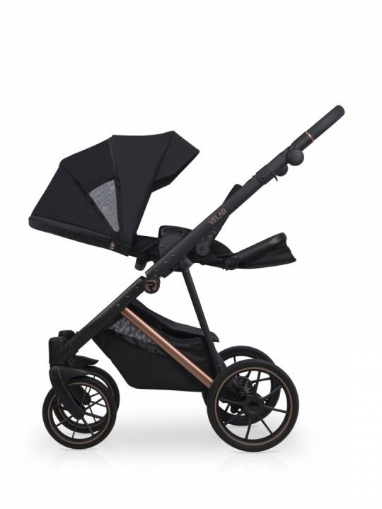 * Landoul care vine in setul VELAR este mare si confortabil. Interiorul este confectionat din bumbac matlasat de mare densitate, iar salteluta este umpluta cu par de nuca de cocos, ceea ce ii confera fermitatea optima, este antialergica si nu absoarbe umiditatea. Cu cele doua fante de ventilare din dotare, landoul VELAR este perfect pentru zilele de vara calduroase, permitand aerului sa circule. Panoul frontal de ventilare cu plasa poate avea si rolul de fereastra pentru bebe.
