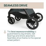 -Manevrabilitatea superioară este asigurata de roțile mari și performante, dotate cu rulmenți și amortizoare. Sistemul pivotant dispune și el de rulmenți, iar modelul special al roților reduce vibrațiile, garantând o plimbare lină și stabilă pe orice teren.