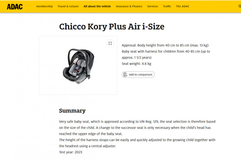 Detalii Tehnice scaun auto copii Kory Air Plus i-Size: