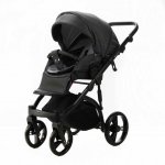 Carucior pentru copii, Adamex, 2 in 1, Lanti PS35, Pliabil, landou cu salteluta, copertina reglabila, roti frontale pivotante, cu dubla suspensie si husa de ploaie inclusa, Linen & EcoLeather, Dark Gray