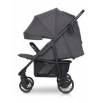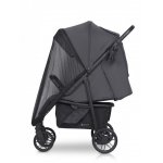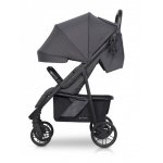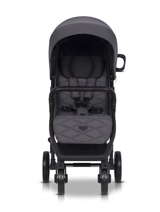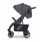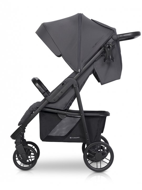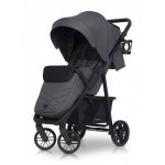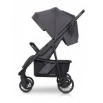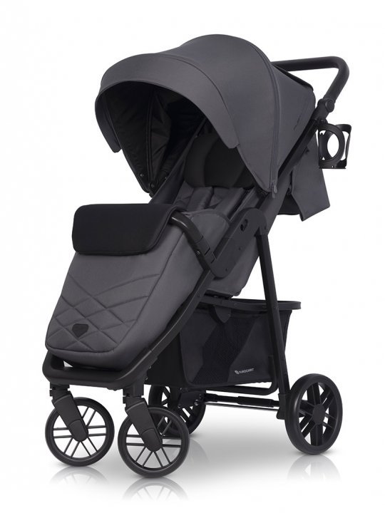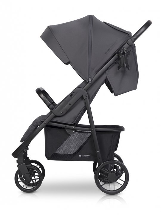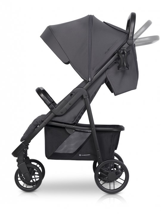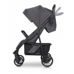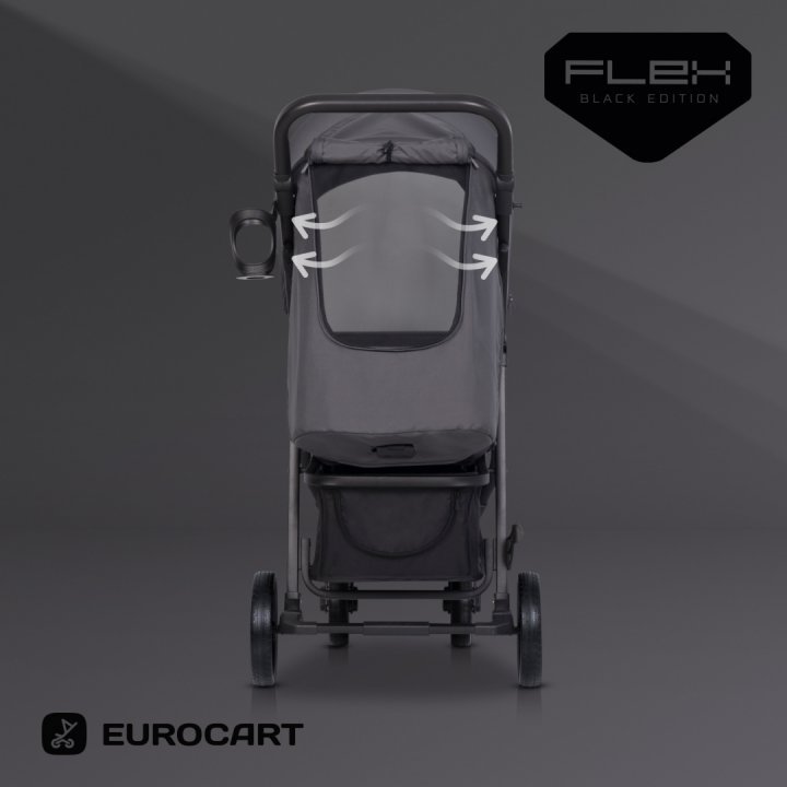 Carucior pentru copii Euro-Cart Flex omologat pana la 22 kg, Iron Black Edition cu cadru de aluminiu, roti cu suspensii, echipat cu husa de picioruse groasa, pelerina de ploaie si suport pentru biberon