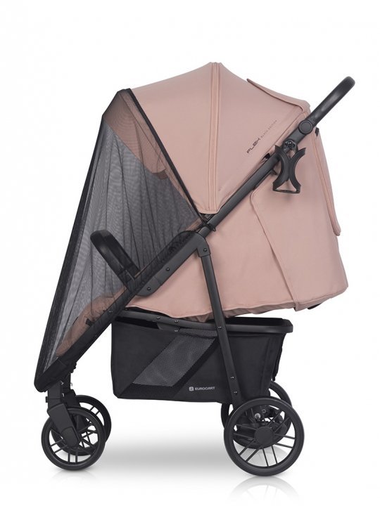 * FLEX este de asemenea echipat cu husa de picioruse groasa, pelerina de ploaie in marime completa, suport pentru biberon si plasa contra insectelor.