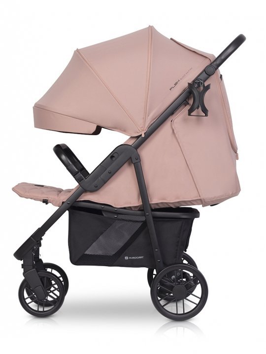 Carucior pentru copii, Euro-Cart Flex omologat pana la 22 kg, Langust Black Edition, cu cadru de aluminiu, roti cu suspensii, echipat cu husa de picioruse groasa, pelerina de ploaie si suport pentru biberon