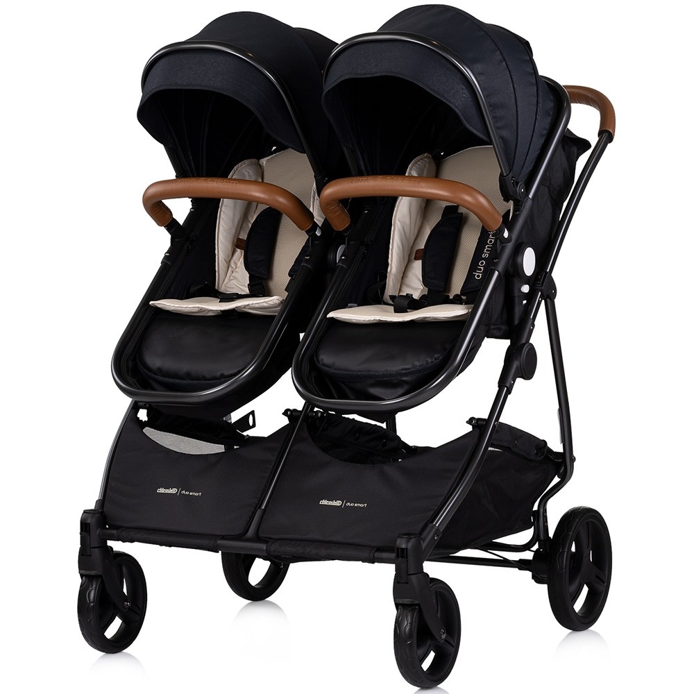 Carucior pentru copii gemeni Chipolino Duo Smart blackberry 2 in 1, pliere simpla si compacta, sezut transformabil si reversibil, spatar reglabil, bara de protectie detasabila, copertina reglabila, husa pentru picioare