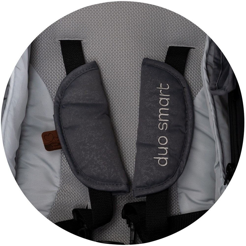 • Sezuturi reversibile, pot fi montate pe cadru cu fata spre parinte sau cu fata spre directia de mers