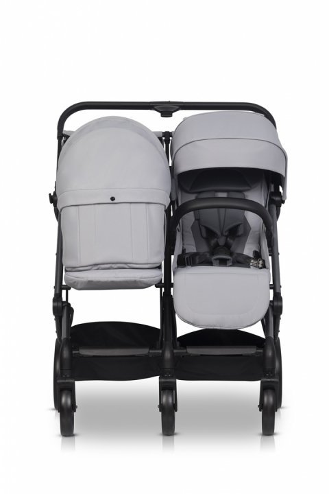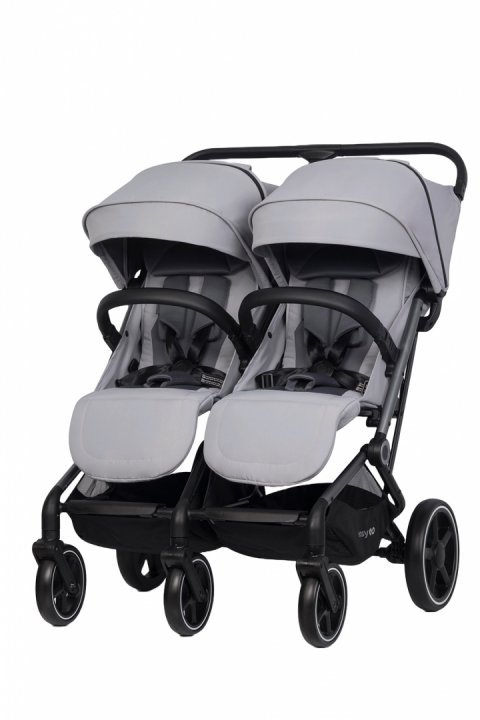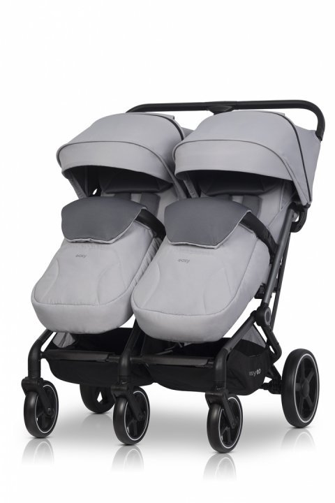 Carucior pentru copii gemeni, EasyGo Echo 2 in 1, omologat EN1888, Pliabil, cu Landouri textile, copertine independente reglabile si detasabile, suspensii, spatar reglabil, cu 2 huse de picioruse incluse, Cloud Gray