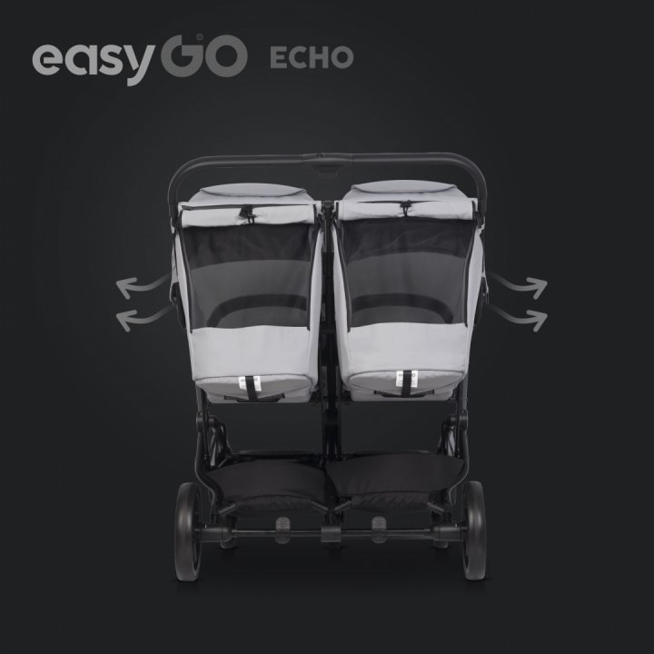 * Conceperea unui carucior de gemeni fiabil si usor nu este o sarcina facila, deoarece trebuie combinate mai multe elemente intr-un produs: confortul copiilor, dimensiunea si greutatea caruciorului, usurinta in manevrare si faptul ca trebuie sa incapa pe usa liftului, a magazinului sau acasa. Asa a fost conceput Echo, sa intruneasca confortul pentru copii si usurinta in utilizare pentru parinti.
