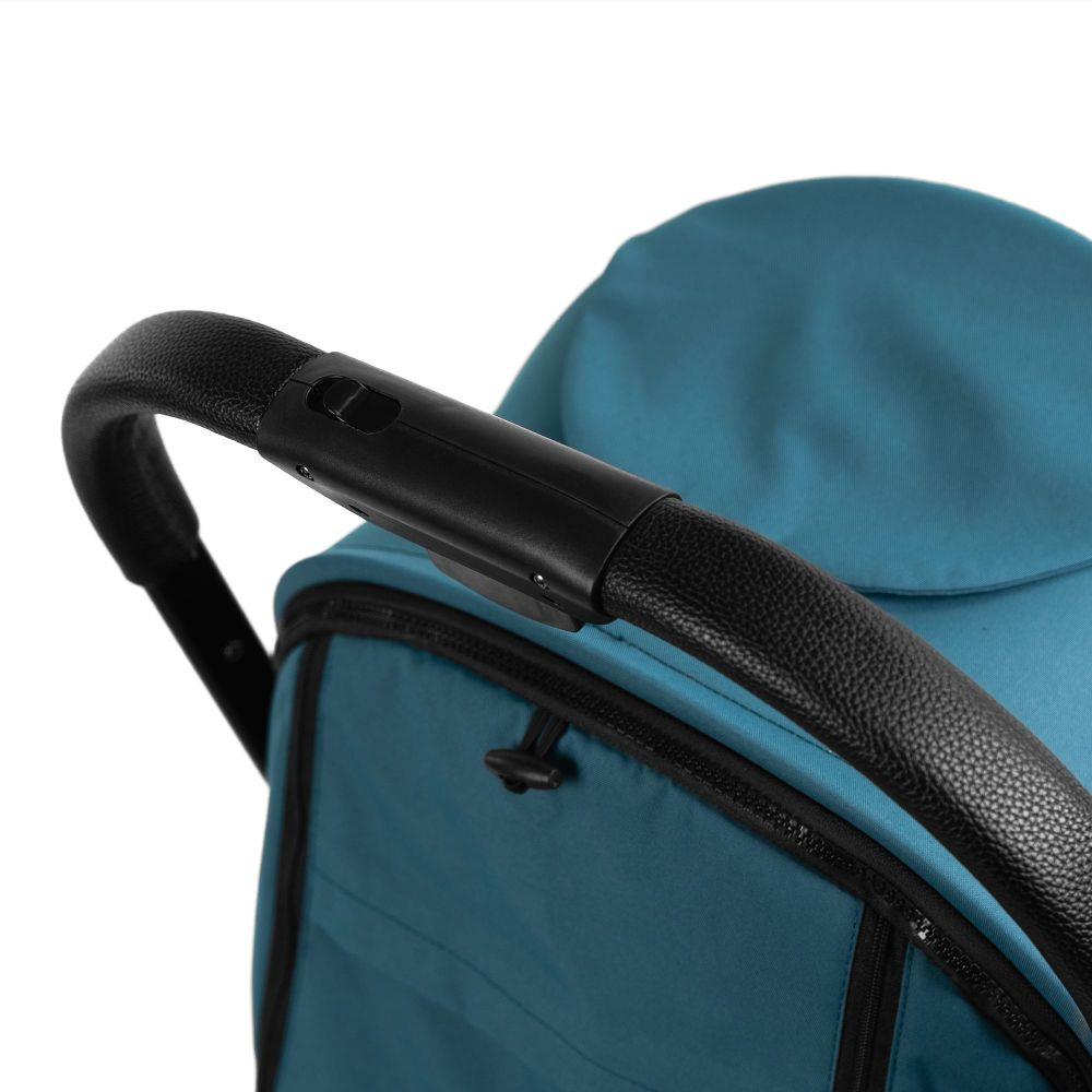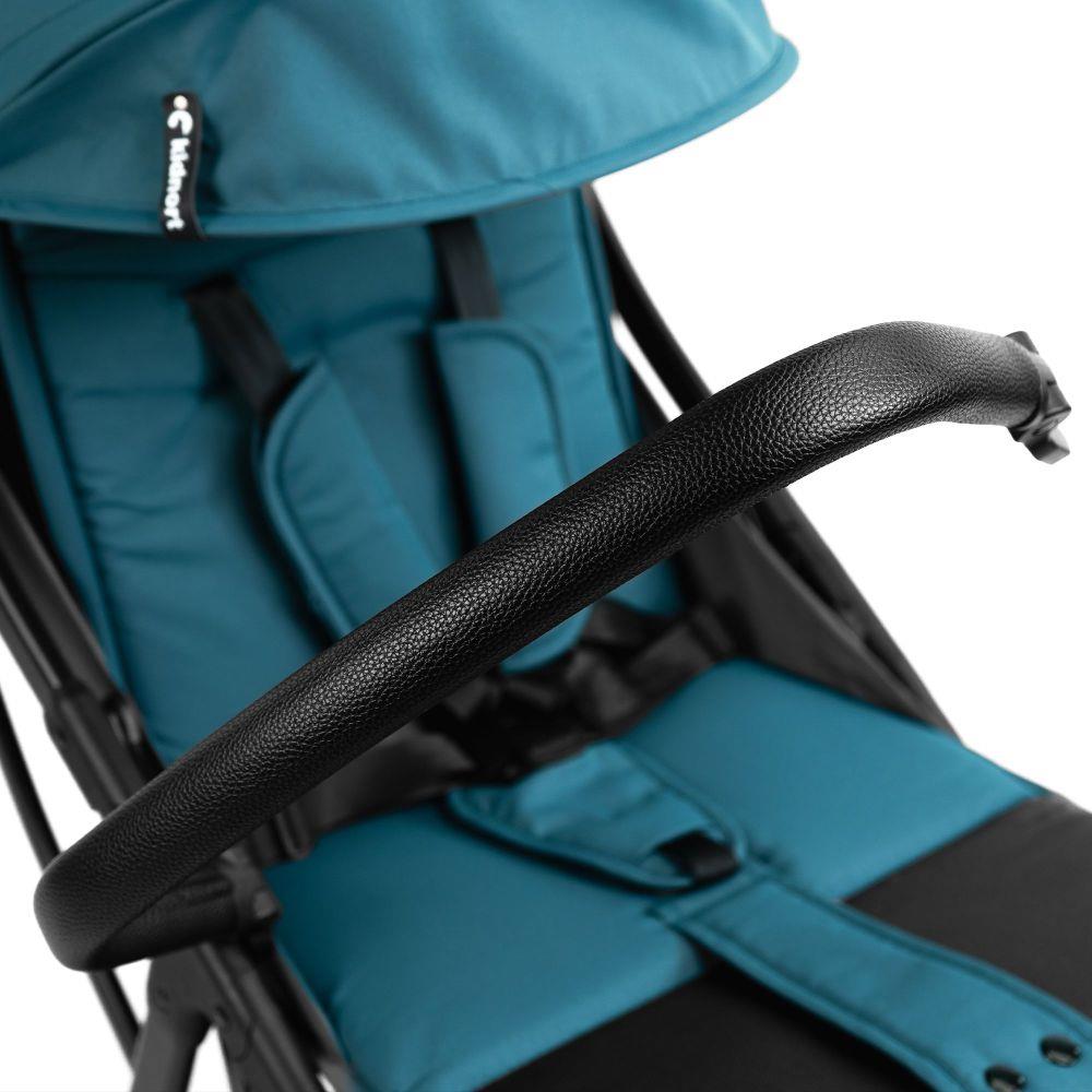 Caruciorul are un maner si o bara de siguranta basculanta din piele ecologica moale. Detasarea barei pe o parte faciliteaza amplasarea si scoaterea copilului din carucior.