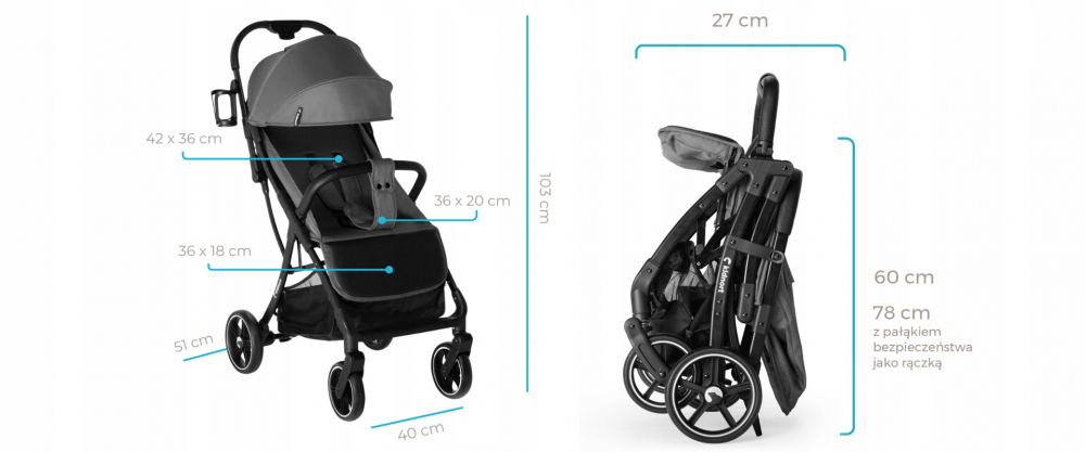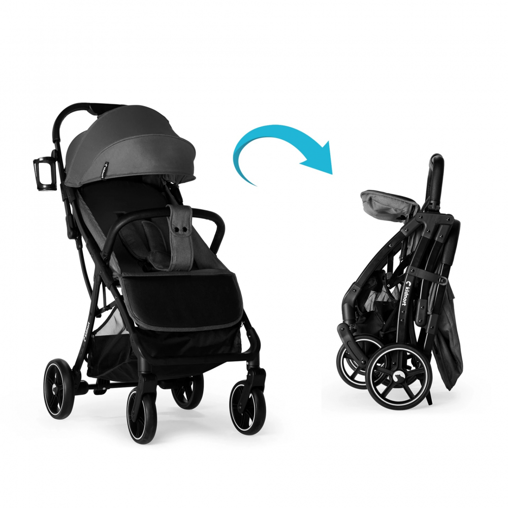 Poate fi depozitat atunci cand este pliat in pozitie verticala. Pentru confortul parintelui, exista un buzunar suplimentar mare pe spatele spatarului, un cos sub carucior si un suport pentru pahare.