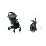 | Caracteristici speciale: | Roti cu blocare directie Sistem tip troller Spatar reglabil Compatibil avion Suport picioare reglabil Suspensii Bara protectie detasabila |