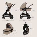 Carucior pentru copii Lionelo Amber Bej, 3 in 1, cadru aluminiu, cu landou intarit si salteluta moale, scoica auto testata ADAC, reversibil, accesorii, geanta parinti, pana la 22 kg, EN1888-1