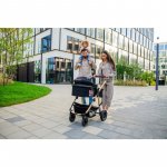 • Caruciorul detine un scaun orientat spre cu fata sau cu spatele si cu un sistem usor de pliere de dimensiuni compacte.