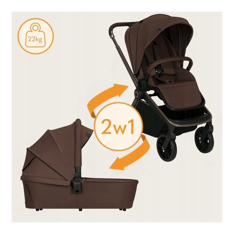 Carucior pentru copii Lionelo Mika Plus Mocha Mousse, 2 in 1, cadru din aluminiu, cu landou intarit si salteluta moale, reversibil, sistem de ventilatie 3D, accesorii, pana la 22 kg, conform cu EN1888-1