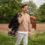 Se pliaza tip carte cu o singura mana si ocupa spatiu redus de depozitare. Bara frontala poate fi utilizata ca maner de transport cand caruciorul este pliat.