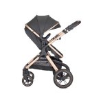 Carucior pentru copii Lorelli Viola Black 3 in 1 cos auto Spirit inclus, transformabil, sezut reversibil, maner ajustabil, cadru din aluminiu, suspensii, bara detasabila, pana la 22 kg, multiple accesorii