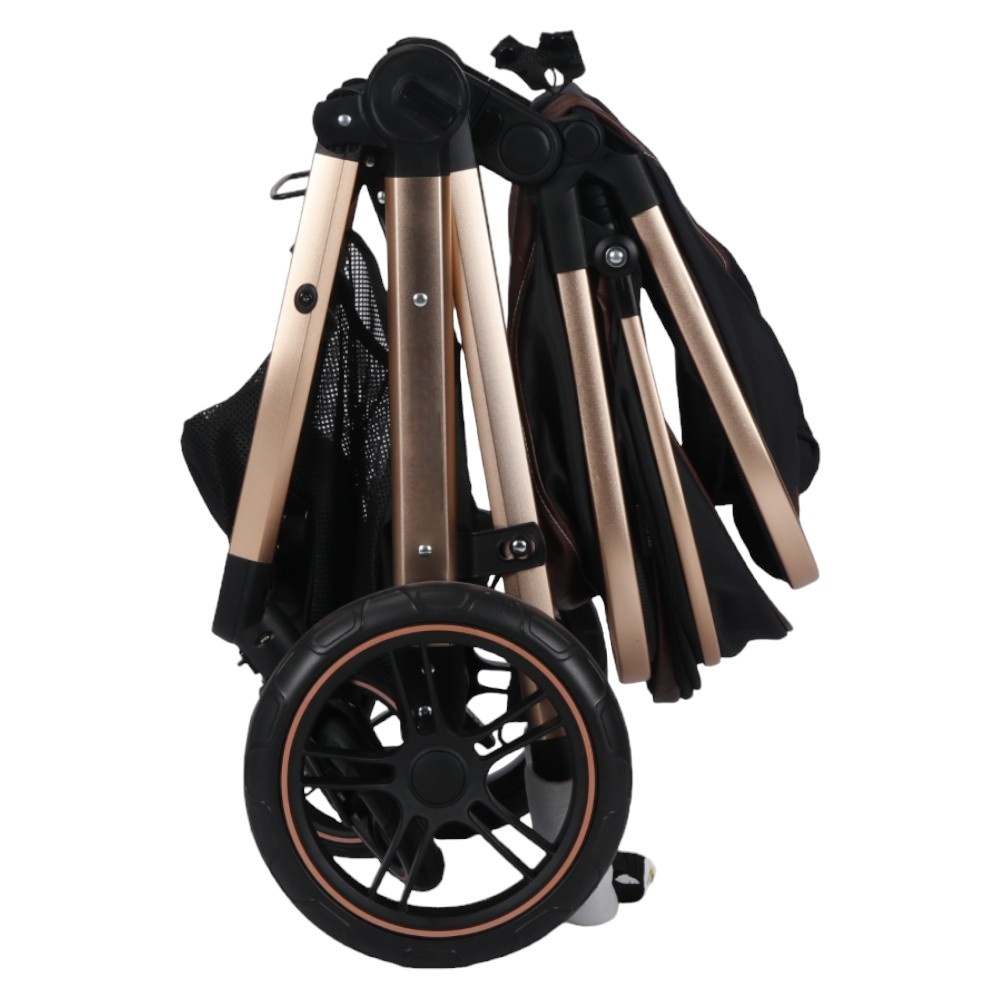 Carucior pentru copii Novokids X2000 series Negru 3 in 1 , spatar reglabil, reversibil, landou , geanta, cadru aluminiu Gold, amortizoare, roti din cauciuc, scoica auto, plasa insecte