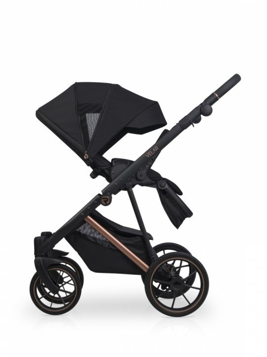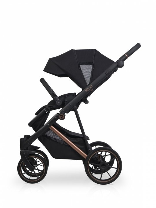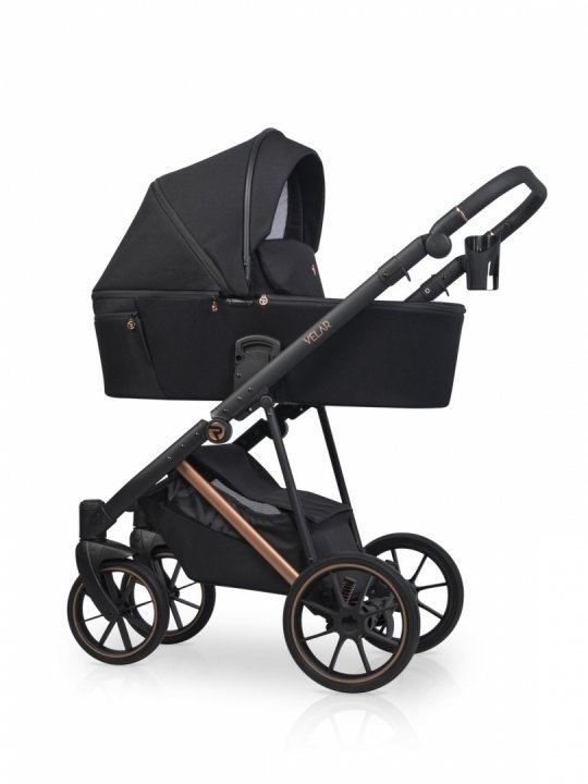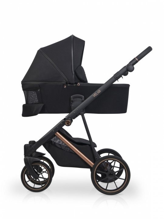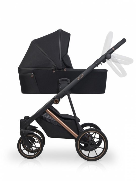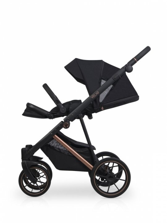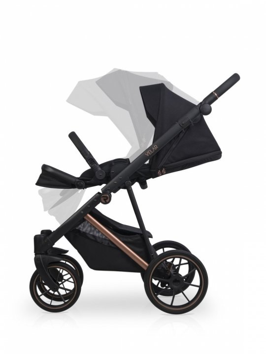 * Landoul care vine in setul VELAR este mare si confortabil. Interiorul este confectionat din bumbac matlasat de mare densitate, iar salteluta este umpluta cu par de nuca de cocos, ceea ce ii confera fermitatea optima, este antialergica si nu absoarbe umiditatea. Cu cele doua fante de ventilare din dotare, landoul VELAR este perfect pentru zilele de vara calduroase, permitand aerului sa circule. Panoul frontal de ventilare cu plasa poate avea si rolul de fereastra pentru bebe. Ambele fante de ventilare sunt bine inchise cu fermoar, astfel incat in anotimpul rece sa pastreze caldura in interior. O husa de picioruse suplimentara va permita sa-l feriti pe cel mic de cele mai dificile conditii meteorologice.