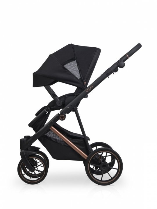 * VELAR este perfect ca si carucior de oras, insa face fata cu brio oricarui tip de teren, datorita rotilor cu suprafata de rulare din GEL mari in diametru. Calea de rulare a rotilor are rizuri all season, potrivite pentru toate cele patru anotimpuri.