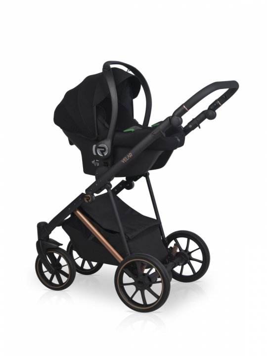 Carucior 3 in 1 Riko Velar Magma Premium Line, scoica auto si accesorii incluse, pana la 22 kg, Negru