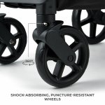 Caruciorul este echipat cu roti mari, rezistente la perforare, care absorb socurile si ofera o deplasare lina pe diverse suprafete.