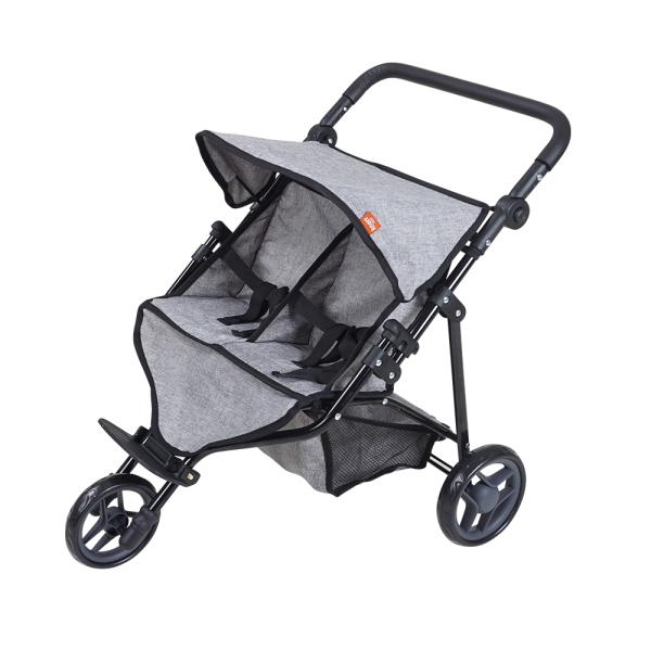 Carucior pentru doua papusi Knorr Toys Duo Jeans Grey maner reglabil pe inaltime, 64x48x55 cm, 3 ani+