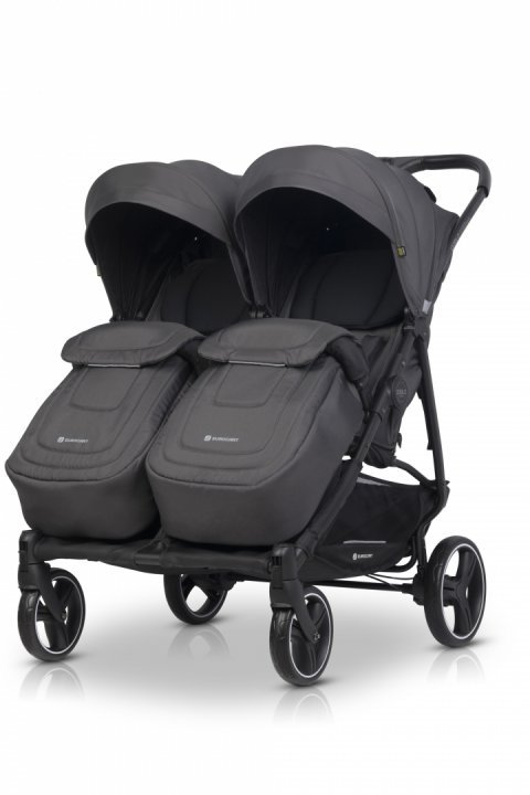 Carucior pentru gemeni 2 in 1 Euro Cart Doblo Iron, cu Landouri, pliabil, cu suspensii, spatar reglabil, copertina reglabila si accesorii incluse, greutate maxim admisa 22 kg