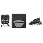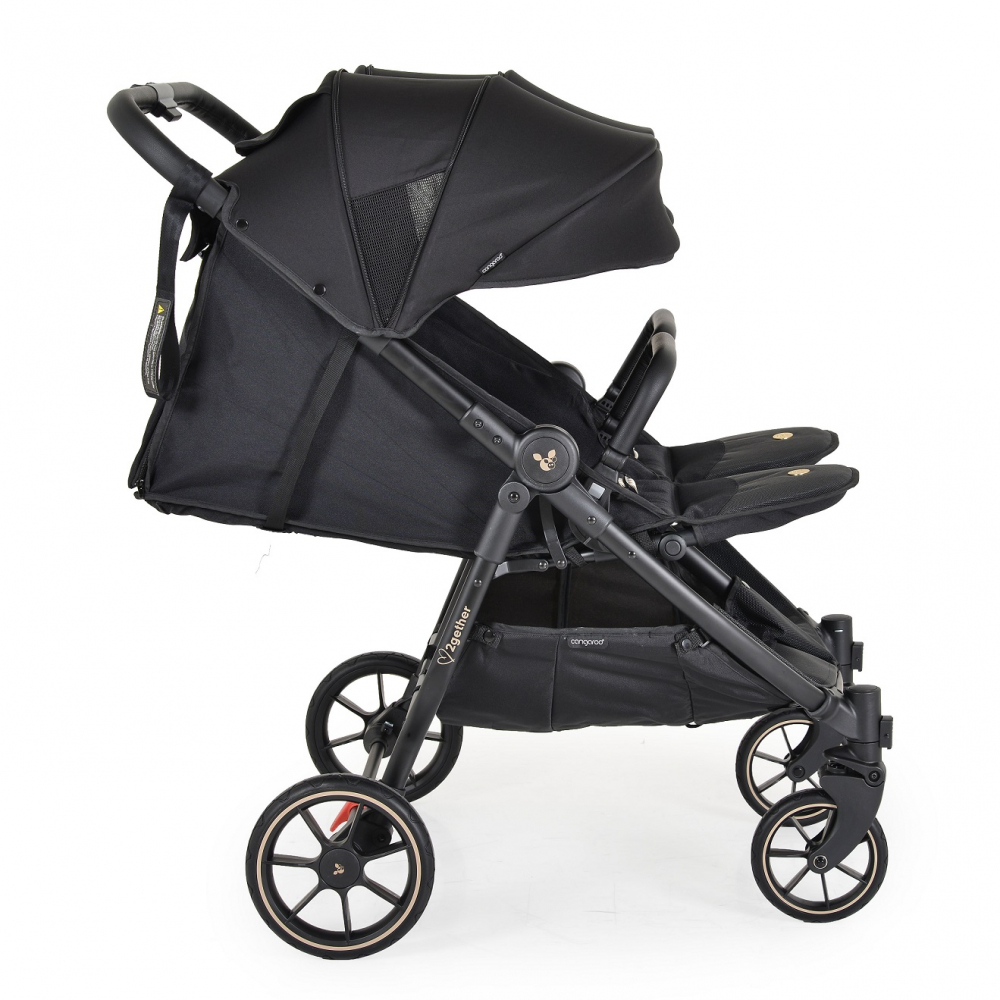 Carucior pentru gemeni Cangaroo 2Gether Modern Black cu Baldachin extensibil,Spatar si Suport pentru picioare reglabile individual,Roti fata din PU pivotante,Extra Suport picioare din cauciuc,recomandat de la nastere