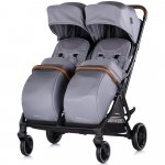 Carucior pentru gemeni Chipolino Twinity Cloud, cadru din aluminiu, suspensii, huse picioare, suport pahar, gentuta