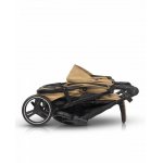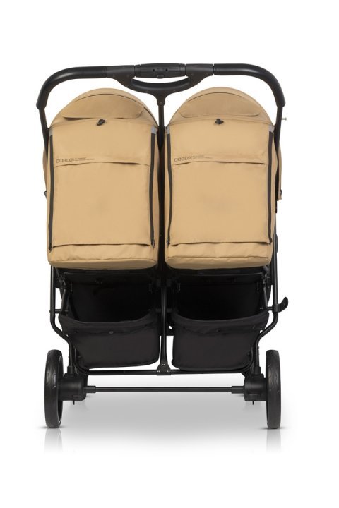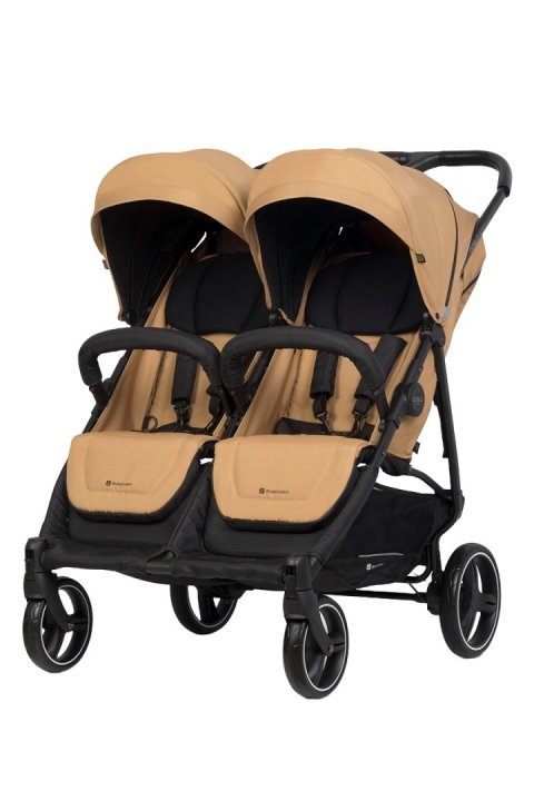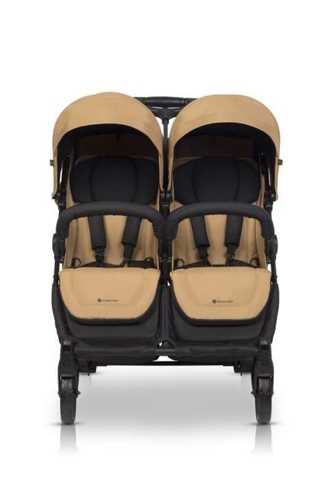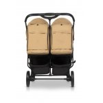 Carucior pentru gemeni Euro Cart Doblo, cu Spatar si Suport pentru picioare reglabile individual, copertina reglabila, husa calduroasa pentru picioare, frana actionata prin pedala, de la nastere pana la 22 kg, Camel