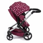 Carucior transformabil 2in1 pentru papusi Bayer Xeo Bordo cu gentuta de umar,maner reglabil 58-71 cm,roti pivotante rezistente,cadru pliabil,pentru papusi de maxim 56cm,dimensiune 68x37x73 cm