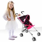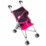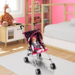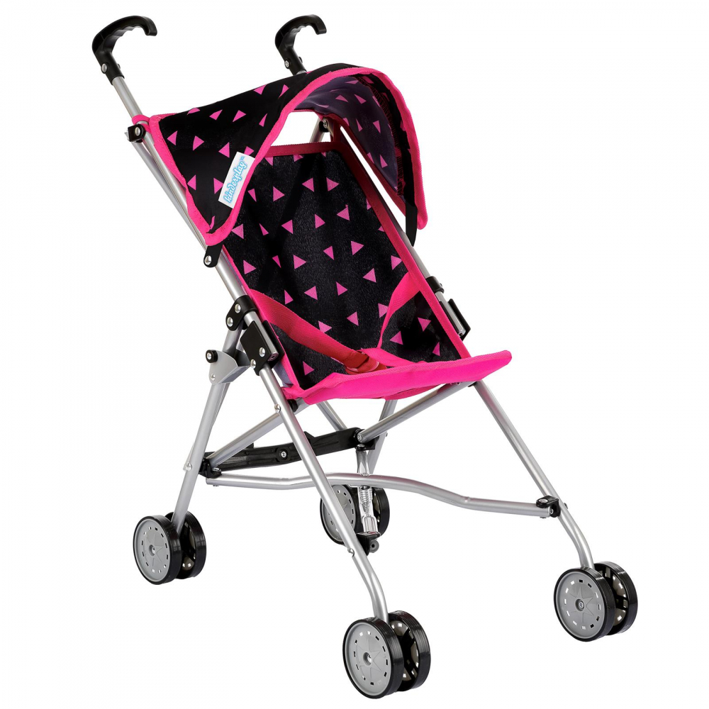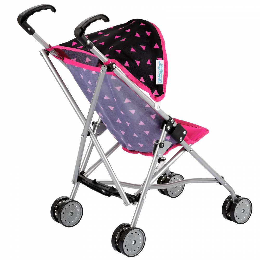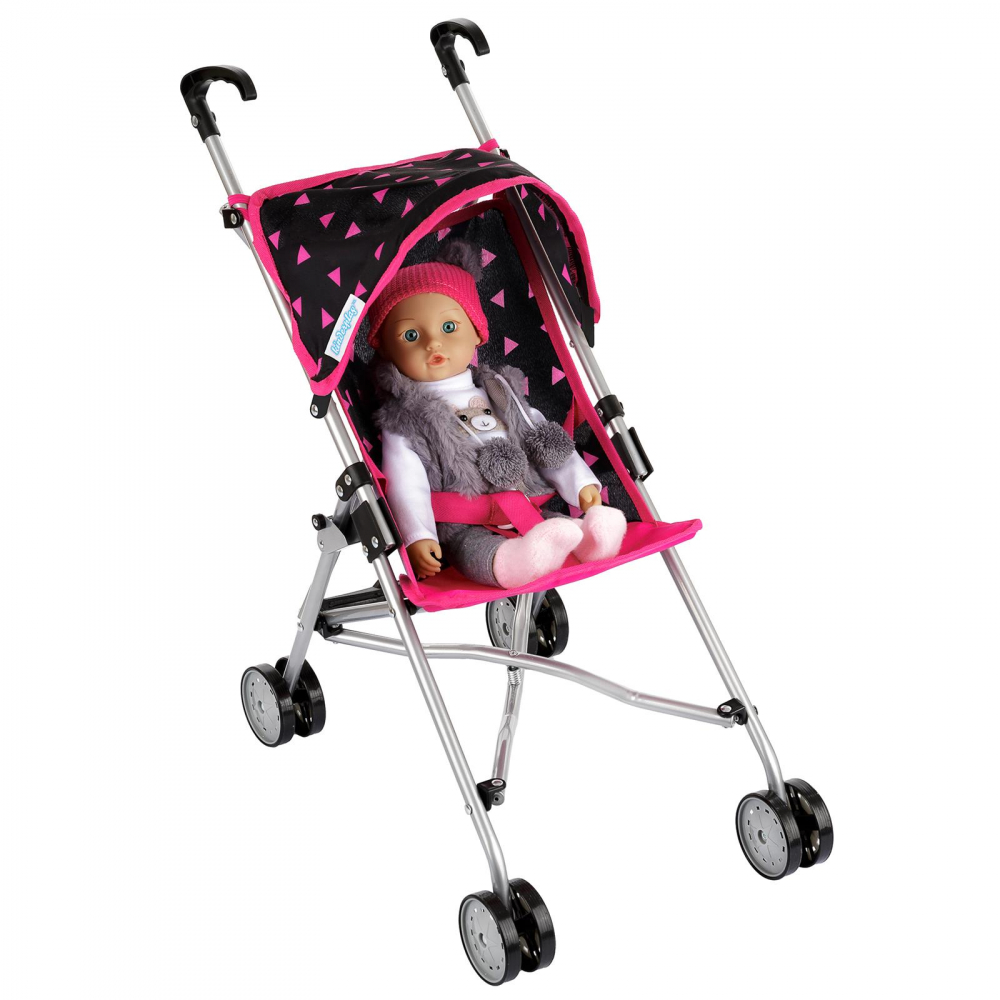 Carucior pentru papusi, cu pliere rapida, Centura de siguranta, Roti duble, 41 x 28 x 54 cm Black/Pink Triangle
