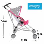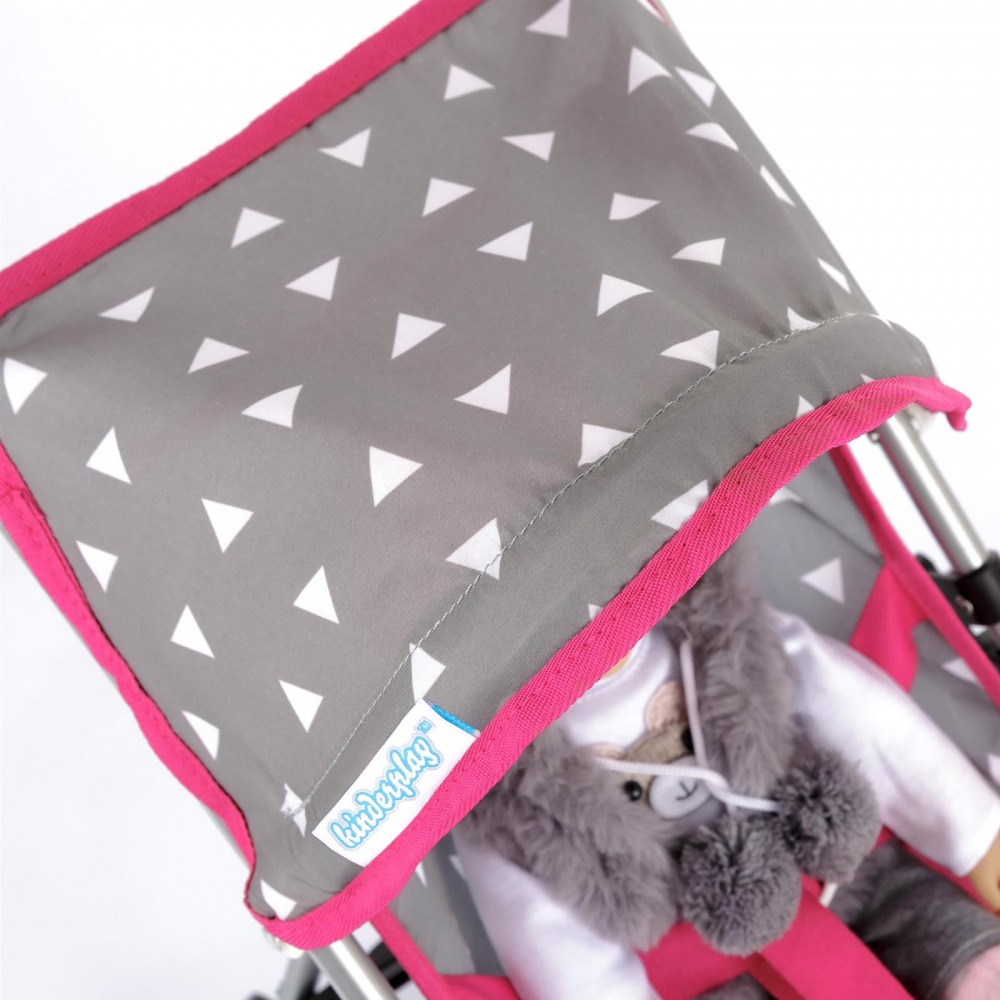 Carucior pentru papusi, cu pliere rapida, Centura de siguranta, Roti duble, 41 x 28 x 54 cm Grey/White Triangle