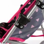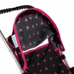 Carucior pliabil de papusi pentru copii Kinderplay, cu copertina rabatabila, cos integrat si centura de siguranta reglabila, 33 x 41 x 56 cm, Black / Pink Triangle