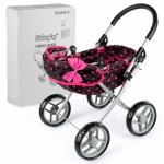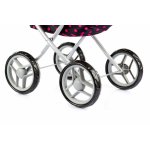 Carucior pliabil de papusi pentru copii Kinderplay, cu landou, constructie usoara si stabila, cadru din aluminiu, roti din spuma PVC, 33 x 48 x 56 cm, Black / Pink Dots