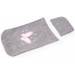 Carucior de papusa confortabil cu plapuma/perna si geanta, aspect denim, gri, roz .