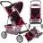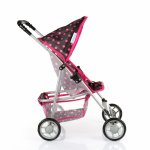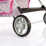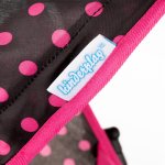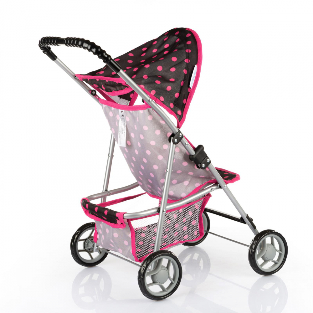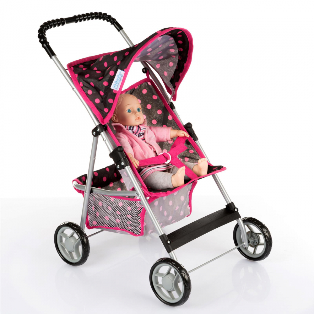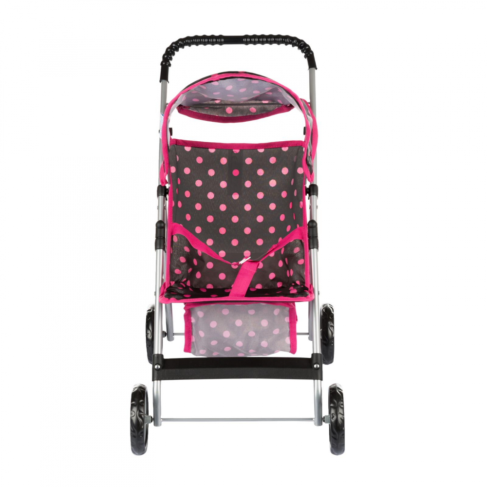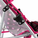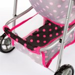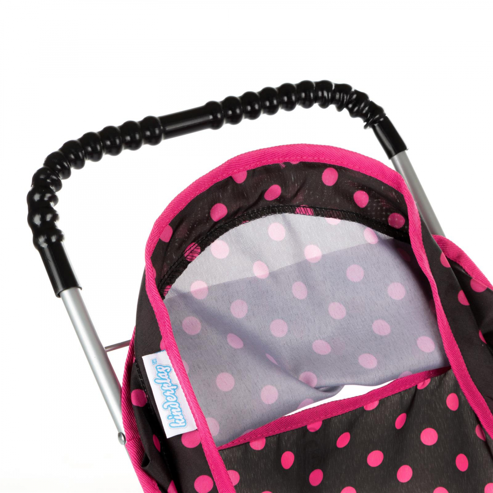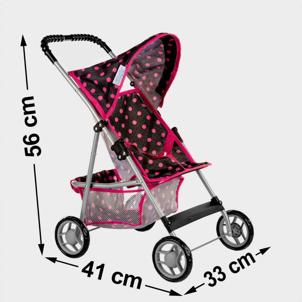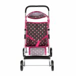 Carucior pliabil pentru papusi cu copertina rabatabila, Cos integrat si Centura de siguranta reglabila, 33 x 41 x 56 cm, Black/Pink Dots