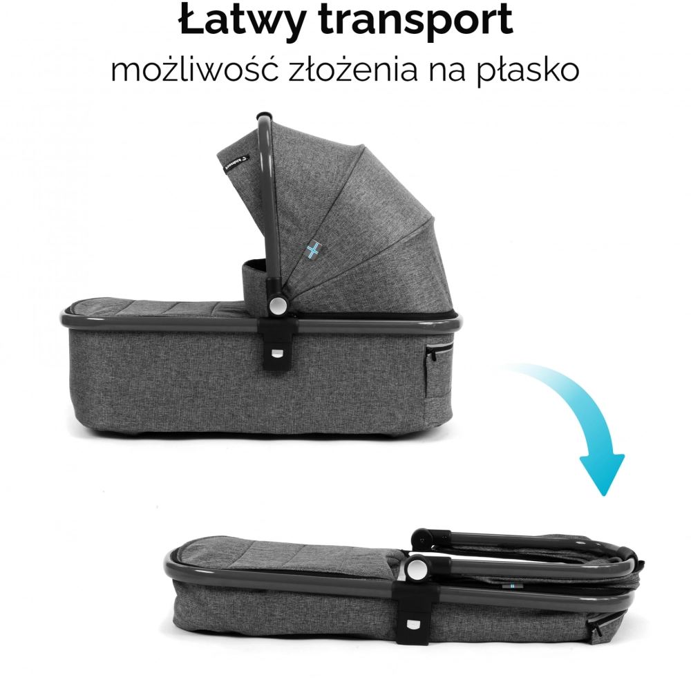 Carucior reversibil 2 in 1 pentru copii Kidnort Isbjorn Grey, pliere compacta, spatar si viziera reglabile, roti cu suspensii, pana la 22 kg, Landou inclus